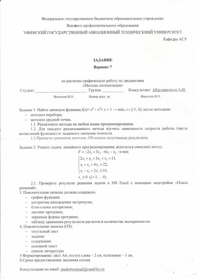 Для студентов УГАТУ по предмету Методы оптимизацииРГР методы оптимизации, вариант 7, УГАТУРГР методы оптимизации, вариант 7, УГАТУ