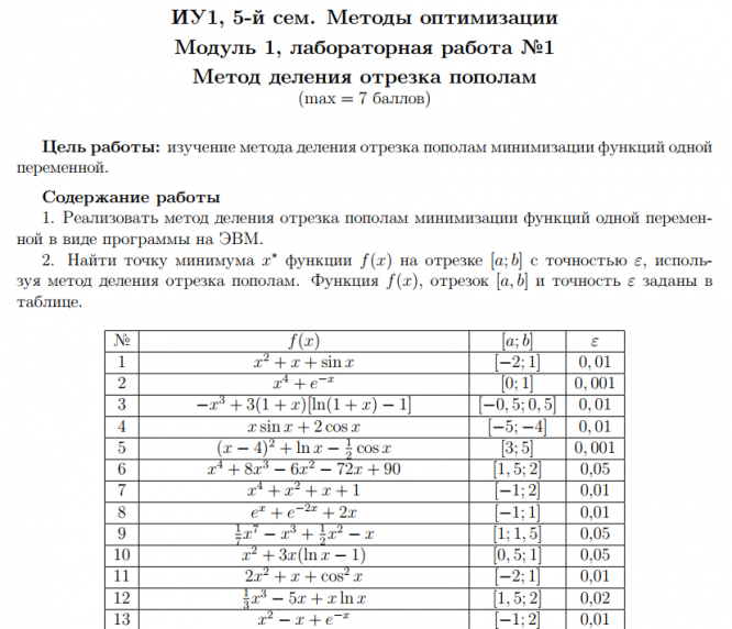 Для студентов МГТУ им. Н.Э.Баумана по предмету Методы оптимизацииМетод деления отрезка пополамМетод деления отрезка пополам