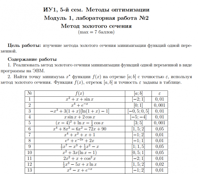 Для студентов МГТУ им. Н.Э.Баумана по предмету Методы оптимизацииМетод золотого сеченияМетод золотого сечения