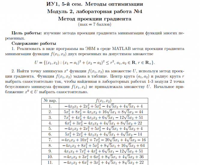 Лабораторная работа 9: Метод проекции градиента вариант Любой