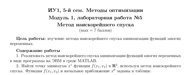 Для студентов МГТУ им. Н.Э.Баумана по предмету Методы оптимизацииМетод наискорейшего спускаМетод наискорейшего спуска