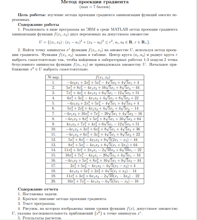 ЛР 9 Метод проекции градиента. Вариант - 5. Среда программирования - MATLAB. В файле представлен отчет с кодом программы.