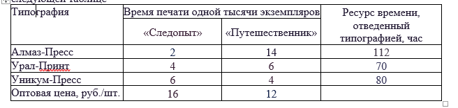 Главная » Учебные материалы » Методы оптимизации » Решения задач » Несколько классов/семестров » Издательский дом «Живое слово» издает два журнала: «Следопыт» и «Путешественник», которые печатаются в трех типографиях: