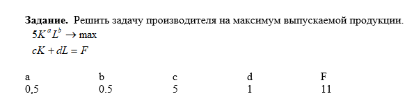 Задача: Решить задачу производителя на максимум выпускаемой продукции