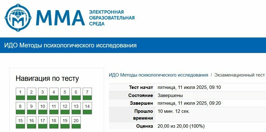 Сборник ответов к экзаменационному тесту Методы психологического исследования ММА.