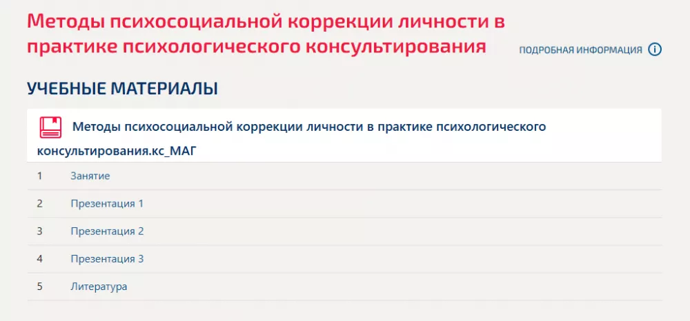 Для студентов МФПУ «Синергия» по предмету Методы психосоциальной коррекции личности в практике психологического консультированияМетоды психосоциальной коррекции личности в практике психологического консультированияМетоды психосоциальной коррекции личности в практике психологического консультирования