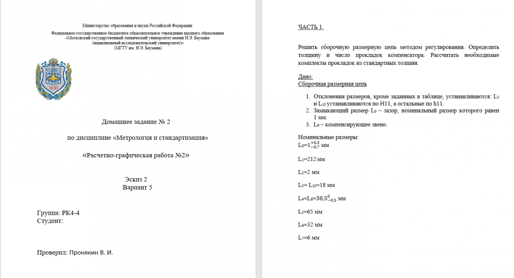Для студентов МГТУ им. Н.Э.Баумана по предмету Метрология, стандартизация и взаимозаменяемостьРасчетно-графическая работа №2Расчетно-графическая работа №2