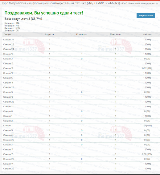 Для студентов ИДДО НИУ «МЭИ» по предмету Метрология и информационно-измерительная техникаКМ-2. Измерения электрических физических величин. Тестирование - 66%КМ-2. Измерения электрических физических величин. Тестирование - 66%