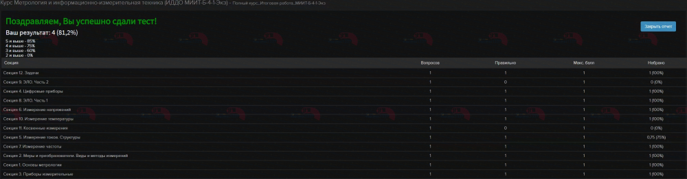 Курс Метрология и информационно-измерительная техника - база ответов к тестам: