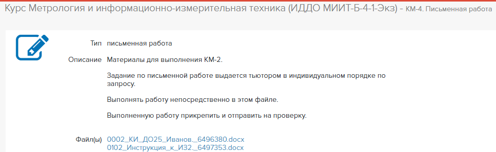 Курс Метрология и информационно-измерительная техника (ИДДО МИИТ-Б-4-1-Экз) - КМ-4. Письменная работаПоказать/скрыть дополнительное описание