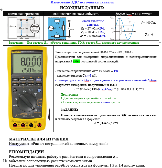 ДЗ: Типовое задание по теме "Косвенные измерения". Контрольная работа "Измерение ЭДС источника сигнала"