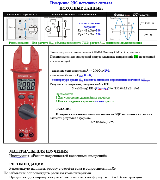 ДЗ: Типовое задание по теме "Косвенные измерения". Контрольная работа "Измерение ЭДС источника сигнала"