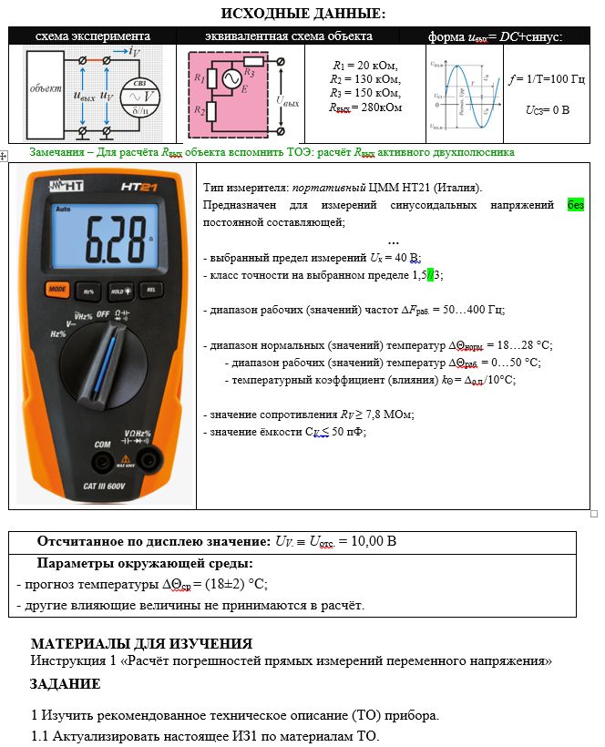 Для студентов ИДДО НИУ «МЭИ» по предмету Метрология и информационно-измерительная техникаТиповое задание по теме "Прямые измерения". Контрольная работа, Вариант 122207ПИТиповое задание по теме "Прямые измерения". Контрольная работа, Вариант 122207ПИ