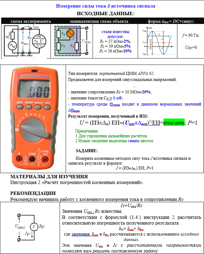 Измерить косвенным методом мощность, рассеиваемую резистором R2 и записать результат в формате: Р2 = (ИЗ±∆п.) ЕИ; Р=1
