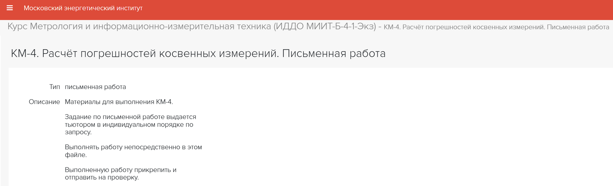 Услуга: КМ-4. Расчёт погрешностей косвенных измерений. Письменная работа