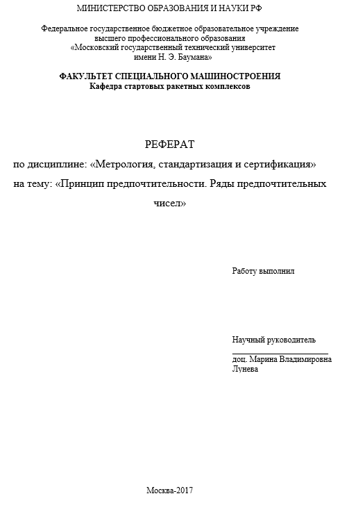 Реферат: Принцип предпочтительности. Ряды предпочтительных чисел