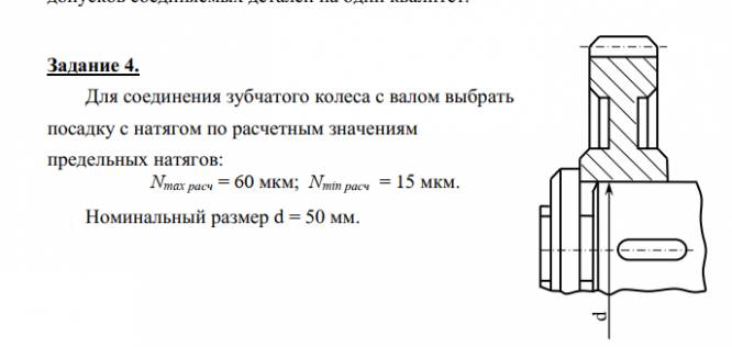 Показать, как изменятся характеристики посадки при изменении допусков соединяемых деталей на один квалитет. Задание 4. Для соединения зубчатого колеса с валом выбрать посадку с натягом по расчетным значениям предельных натягов: Nmax расч = 60 мкм; Nmin расч = 15 мкм. Номинальный размер d = 50 мм..