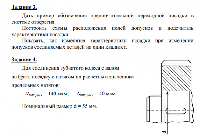Показать, как изменятся характеристики посадки при изменении допусков соединяемых деталей на один квалитет. Задание 4. Для соединения зубчатого колеса с валом выбрать посадку с натягом по расчетным значениям предельных натягов: N max расч = 140 мкм; N min расч = 40 мкм. Номинальный размер d = 55 мм.
