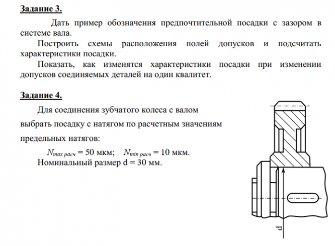 Показать, как изменятся характеристики посадки при изменении допусков соединяемых деталей на один квалитет. Задание 4. Для соединения зубчатого колеса с валом выбрать посадку с натягом по расчетным значениям предельных натягов: N max рaсч = 50 мкм; N min расч = 10 мкм. Номинальный размер d = 30 мм. .