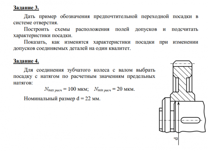 Показать, как изменятся характеристики посадки при изменении допусков соединяемых деталей на один квалитет. Задание 4. Для соединения зубчатого колеса с валом выбрать посадку с натягом по расчетным значениям предельных натягов: N max расч = 100 мкм; N min расч = 20 мкм. Номинальный размер d = 22 мм..