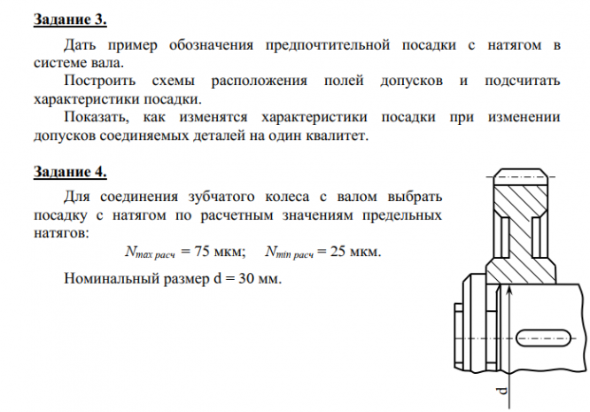 Показать, как изменятся характеристики посадки при изменении допусков соединяемых деталей на один квалитет. Задание 4. Для соединения зубчатого колеса с валом выбрать посадку с натягом по расчетным значениям предельных натягов: N max расч = 75 мкм; N min расч = 25 мкм. Номинальный размер d = 30 мм .
