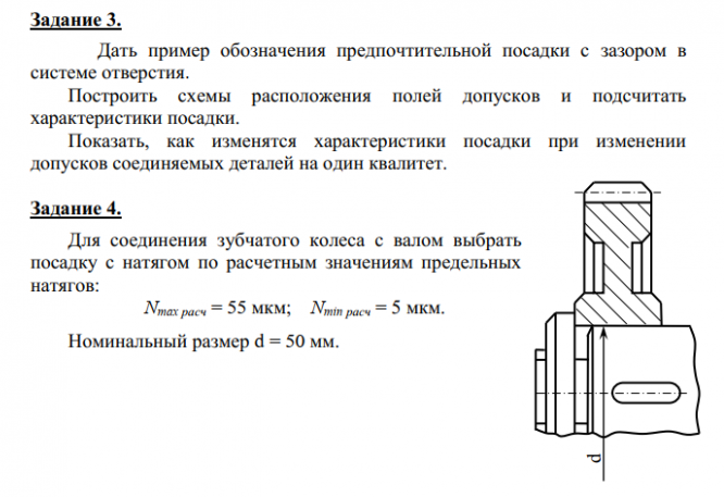 Показать, как изменятся характеристики посадки при изменении допусков соединяемых деталей на один квалитет. Задание 4. Для соединения зубчатого колеса с валом выбрать посадку с натягом по расчетным значениям предельных натягов: N max расч = 55 мкм; N min расч = 5 мкм. Номинальный размер d = 50 мм. .