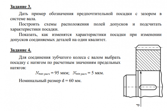 Показать, как изменятся характеристики посадки при изменении допусков соединяемых деталей на один квалитет. Задание 4. Для соединения зубчатого колеса с валом выбрать посадку с натягом по расчетным значениям предельных натягов: N max расч = 95 мкм; N min расч = 5 мкм. Номинальный размер d = 60 мм. .