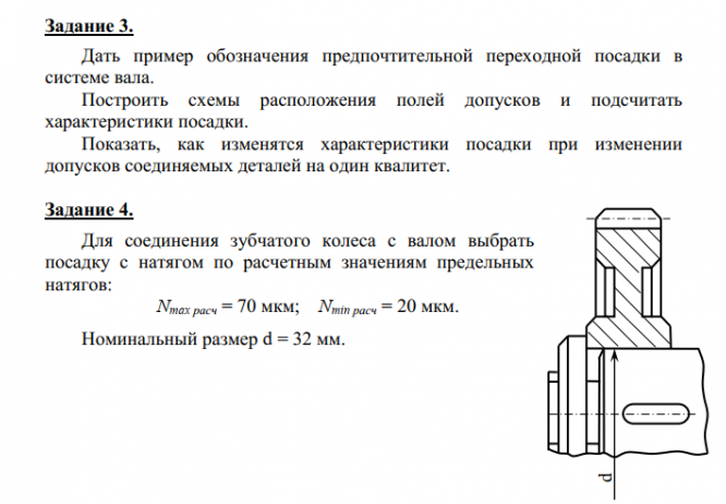 Показать, как изменятся характеристики посадки при изменении допусков соединяемых деталей на один квалитет. Задание 4. Для соединения зубчатого колеса с валом выбрать посадку с натягом по расчетным значениям предельных натягов: N max расч = 70 мкм; N min расч = 20 мкм. Номинальный размер d = 32 мм. .