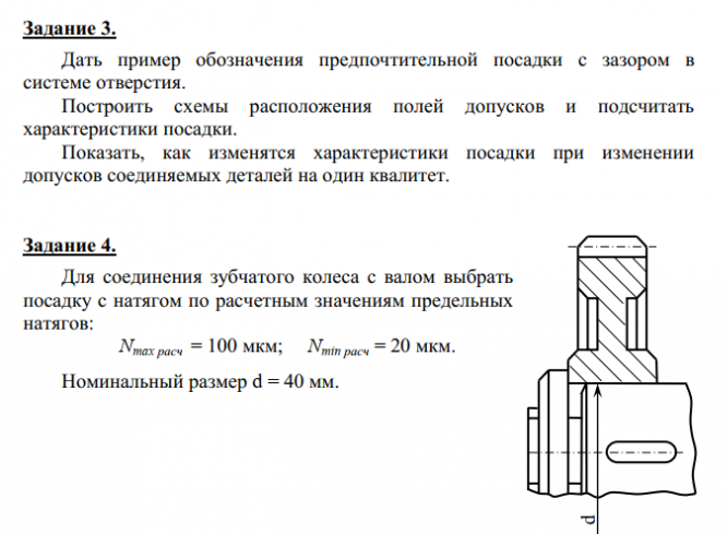 Показать, как изменятся характеристики посадки при изменении допусков соединяемых деталей на один квалитет. Задание 4. Для соединения зубчатого колеса с валом выбрать посадку с натягом по расчетным значениям предельных натягов: N max расч = 100 мкм; N min расч = 20 мкм. Номинальный размер d = 40 мм. .