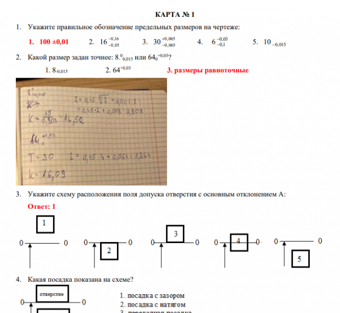 Ответы к контрольной работе 1: Карта №1 вариант 1
