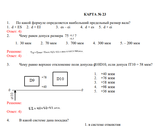 Ответы к контрольной работе 1: Карта №23 вариант 23