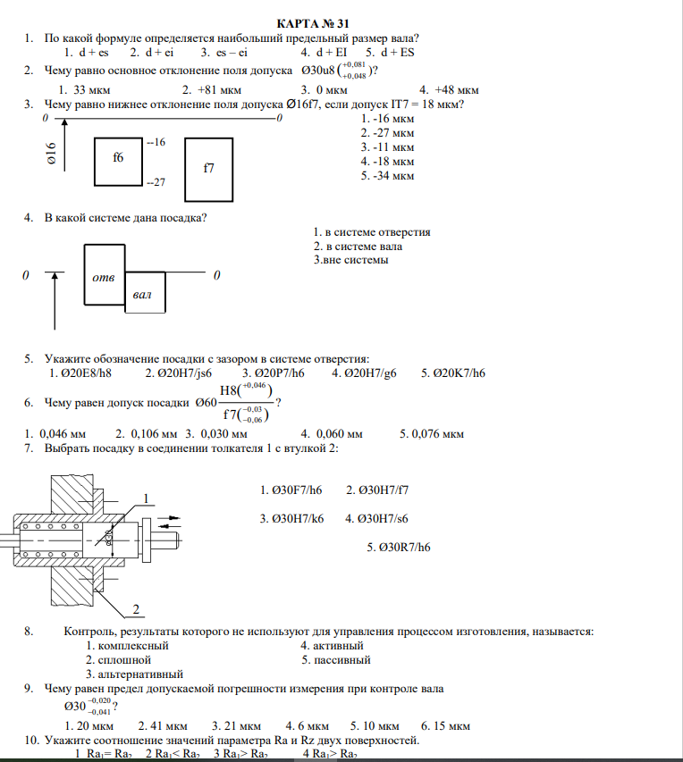 Для студентов МГТУ им. Н.Э.Баумана по предмету Метрология, стандартизация и сертификация (МСиС)Карта №31Карта №31