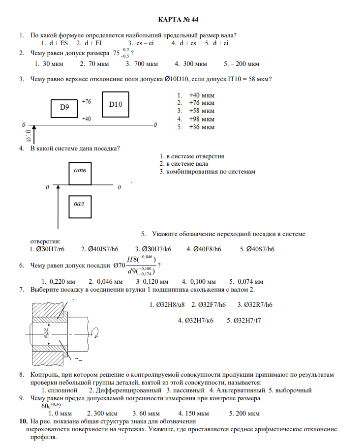 РК №1 - Карта №44 по предмету Метрология, стандартизация и сертификация