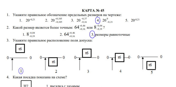 Ответы к контрольной работе 1: Карта №45 вариант 45