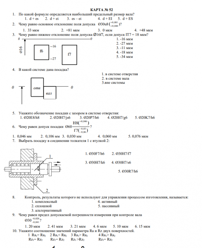 Для студентов МГТУ им. Н.Э.Баумана по предмету Метрология, стандартизация и сертификация (МСиС)Карта №52Карта №52
