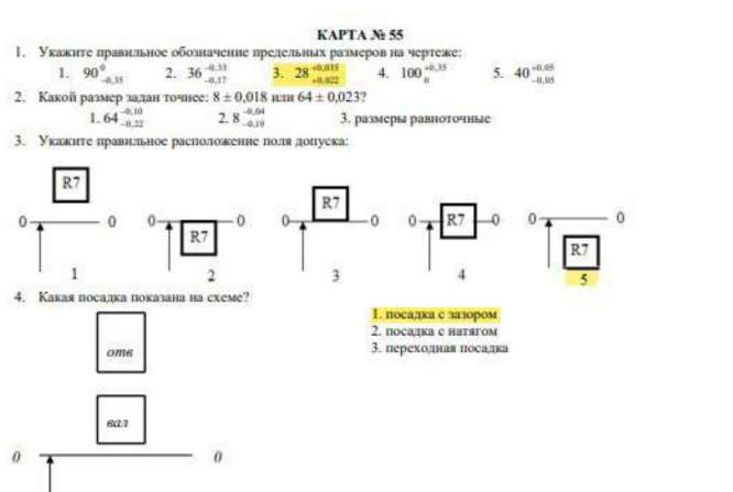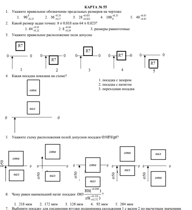 Ответы к контрольной работе 1: Карта №55 вариант 55
