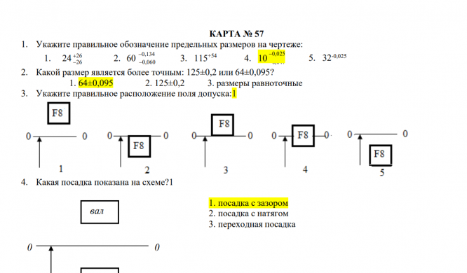 Ответы к контрольной работе 1: Карта №57 вариант 57