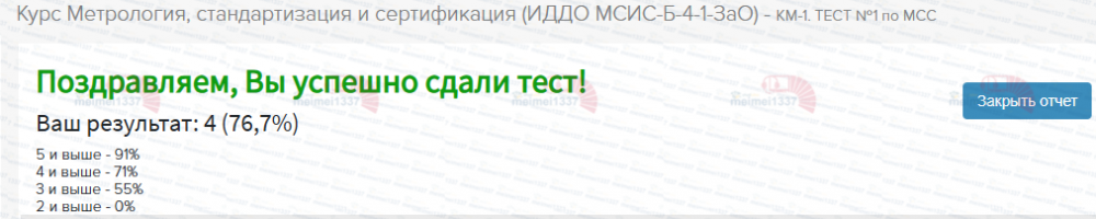 Для студентов ИДДО НИУ «МЭИ» по предмету Метрология, стандартизация и сертификация (МСиС)Курс Метрология, стандартизация и сертификация - КМ-1. ТЕСТ №1 по МССКурс Метрология, стандартизация и сертификация - КМ-1. ТЕСТ №1 по МСС