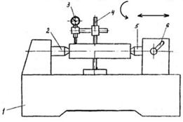 2 поместить вал между неподвижным 2 и подвижным 5 центрами, опустить рычаг 6