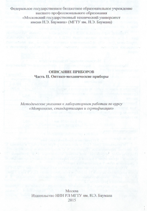 Для студентов МГТУ им. Н.Э.Баумана по предмету Метрология, стандартизация и сертификация (МСиС)Методические указания - Описание приборов. Часть 2. Оптико-механические приборыМетодические указания - Описание приборов. Часть 2. Оптико-механические приборы