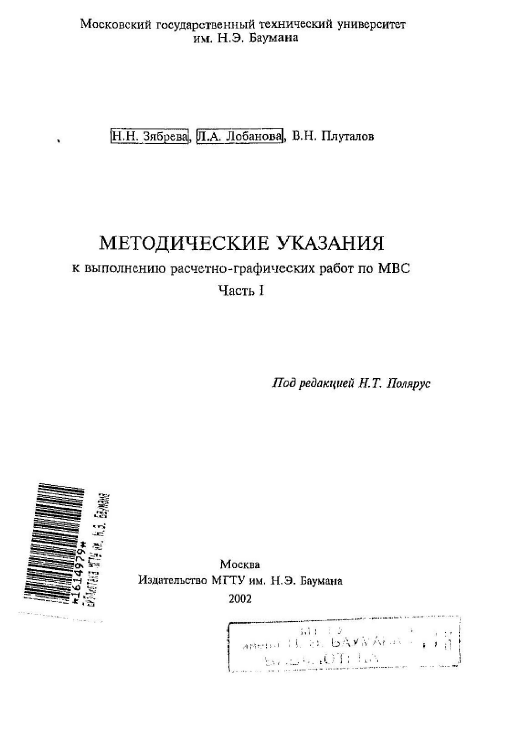 Н.Н. Зябрева, Л.А. Лобанова, В.Н. Плуталов - Методические указания к выполнению расчетно-графических работ по МВС - Часть 1