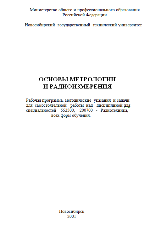 Главная » Учебные материалы » Метрология, стандартизация и сертификация (МСиС) » Книги » НГТУ » 6 семестр » Основы метрологии и радиоизмерения - Рабочая программа, методические указания и задачи