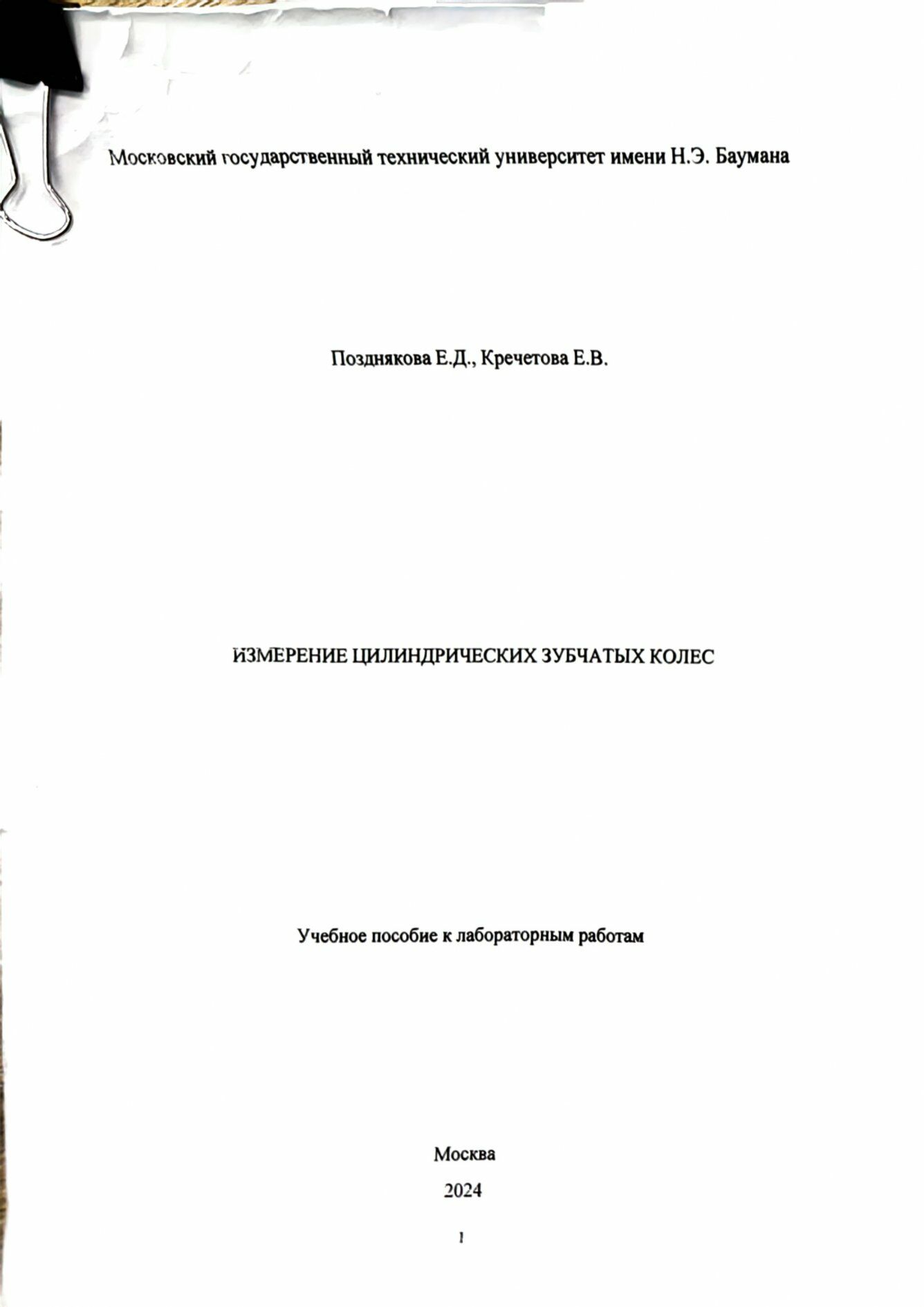 Для студентов МГТУ им. Н.Э.Баумана по предмету Метрология, стандартизация и сертификация (МСиС)Позднякова Е.Д., Кречетова Е.В. - Измерение цилиндрических зубчатых колёсПозднякова Е.Д., Кречетова Е.В. - Измерение цилиндрических зубчатых колёс