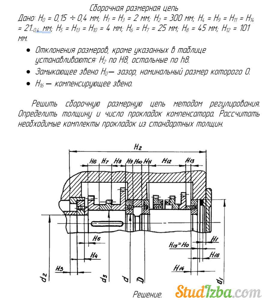 Для студентов МГТУ им. Н.Э.Баумана по предмету Метрология, стандартизация и сертификация (МСиС)Сборочная размерная цепь + Подетальная размерная цепьСборочная размерная цепь + Подетальная размерная цепь