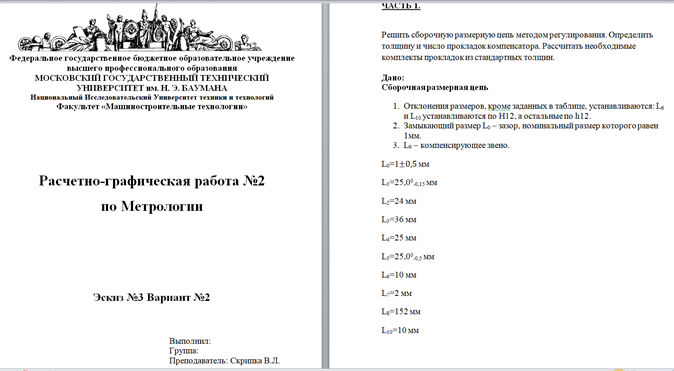 Для студентов МГТУ им. Н.Э.Баумана по предмету Метрология, стандартизация и сертификация (МСиС)Сборочная размерная цепь + Подетальная размерная цепьСборочная размерная цепь + Подетальная размерная цепь