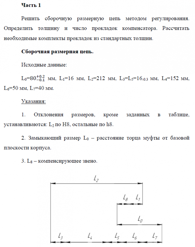 Для студентов МГТУ им. Н.Э.Баумана по предмету Метрология, стандартизация и сертификация (МСиС)Сборочная размерная цепь + Подетальная размерная цепьСборочная размерная цепь + Подетальная размерная цепь