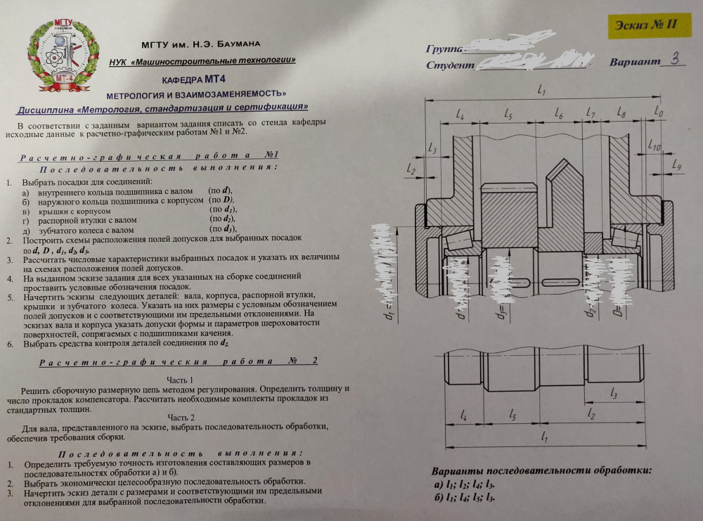 Для студентов МГТУ им. Н.Э.Баумана по предмету Метрология, стандартизация и сертификация (МСиС)Сборочная размерная цепь + Подетальная размерная цепьСборочная размерная цепь + Подетальная размерная цепь
