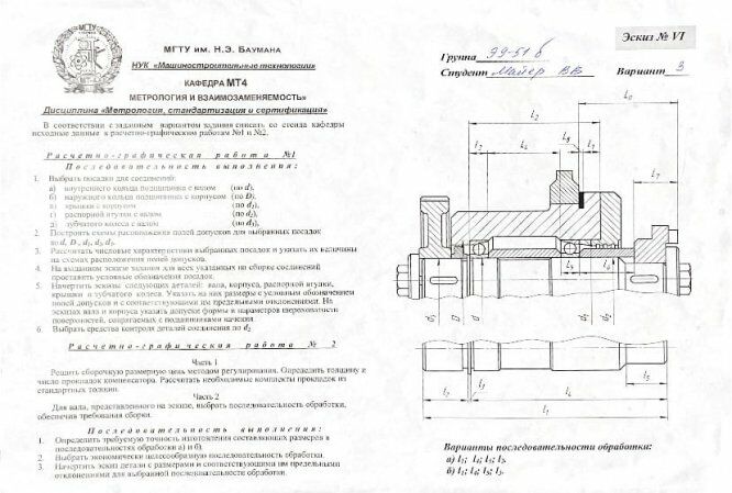 Для студентов МГТУ им. Н.Э.Баумана по предмету Метрология, стандартизация и сертификация (МСиС)Сборочная размерная цепь + Подетальная размерная цепьСборочная размерная цепь + Подетальная размерная цепь