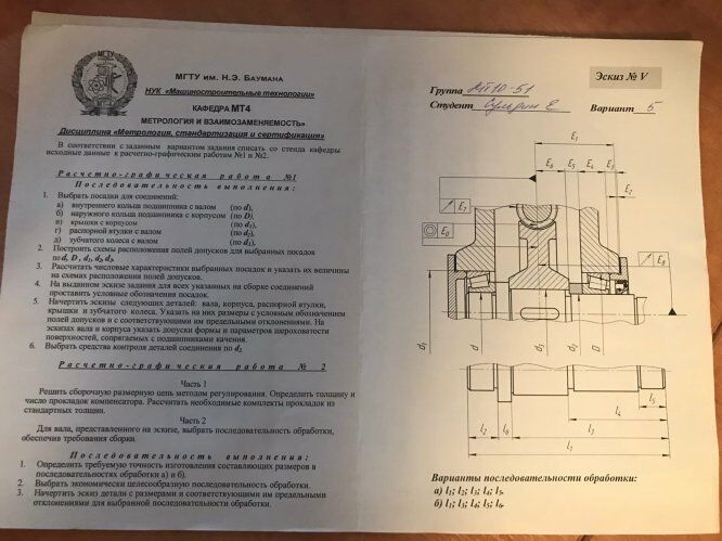 Для студентов МГТУ им. Н.Э.Баумана по предмету Метрология, стандартизация и сертификация (МСиС)Сборочная размерная цепь + Подетальная размерная цепьСборочная размерная цепь + Подетальная размерная цепь