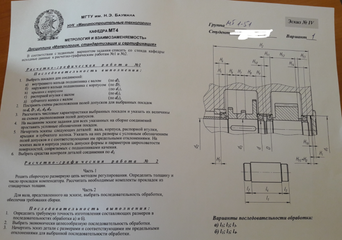 Для студентов МГТУ им. Н.Э.Баумана по предмету Метрология, стандартизация и сертификация (МСиС)Сборочная размерная цепь + Подетальная размерная цепьСборочная размерная цепь + Подетальная размерная цепь